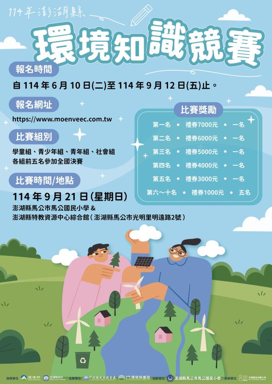 今年度(114年)澎湖縣環境知識競賽初賽熱烈展開,全縣的學生、老師及對環境議題有熱忱、想挑戰自我環境知識的鄉親們,千萬別錯過這場寓教於樂、獎勵豐厚的環境知識盛會!